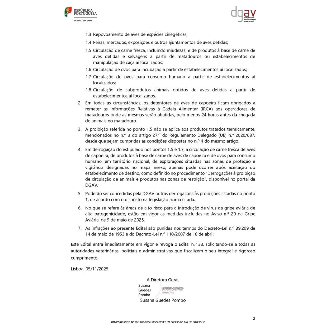 Restrição da circulação de aves vivas, ovos e produtos derivados nas zonas abrangidas;