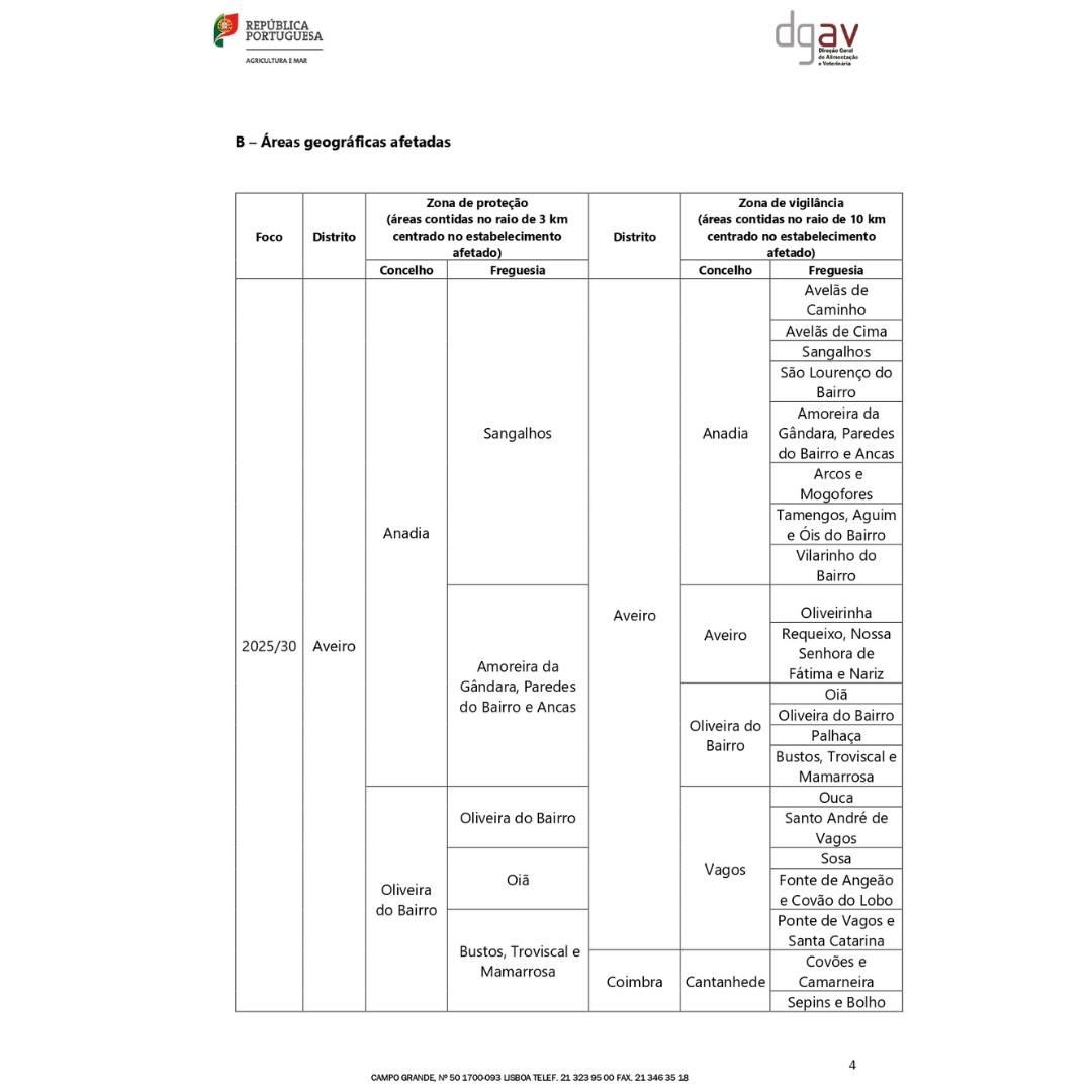 A Direção-Geral de Alimentação e Veterinária (DGAV) confirmou recentemente um foco de Gripe Aviária de Alta Patogenicidade (H5N1) no concelho da Chamusca, na União de Freguesias de Parreira e Chouto.